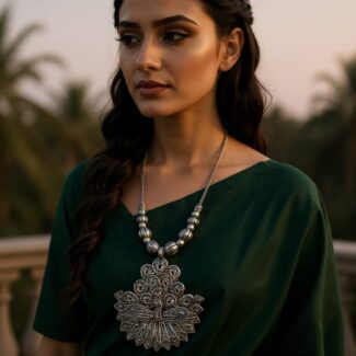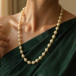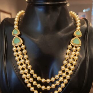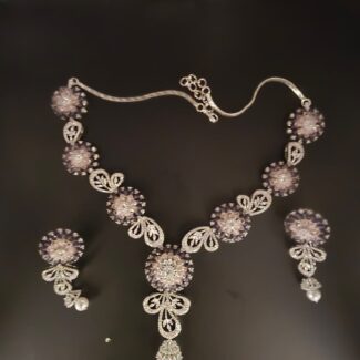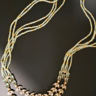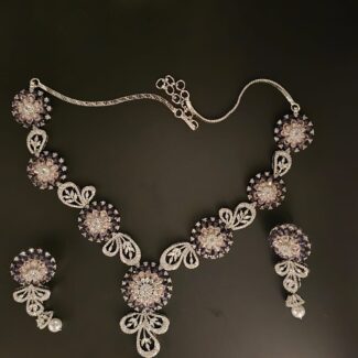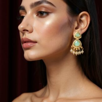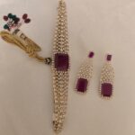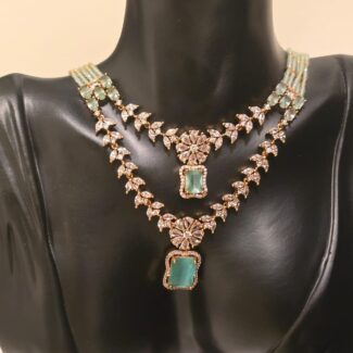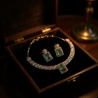 This jewellery set is ideal for receptions, cocktail nights, weddings, sangeet functions, and glamorous evening events.